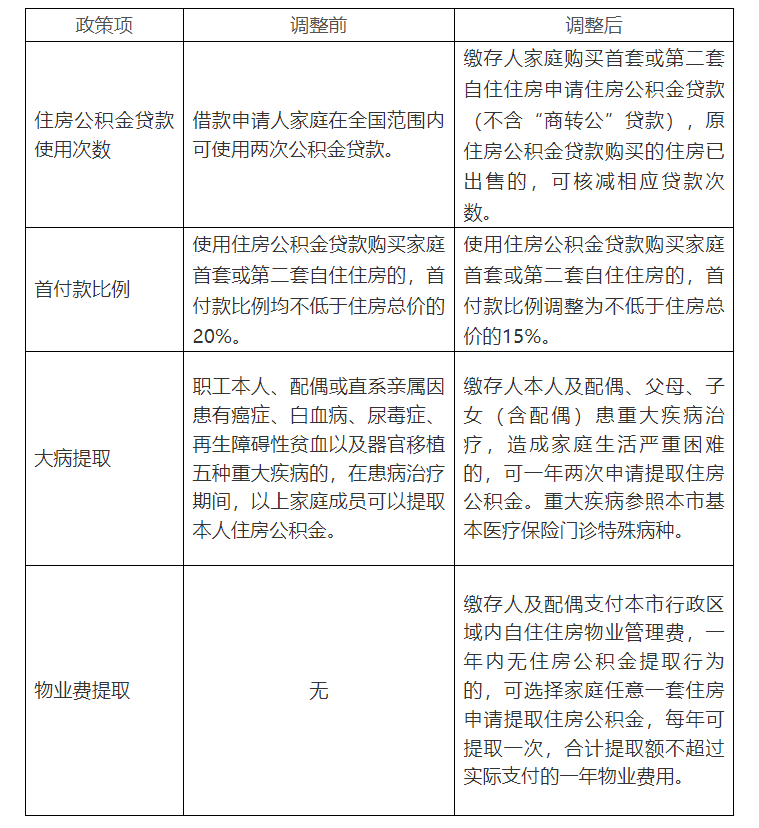 同時,下調住房公積金貸款首付款比例。使用住房公積金貸款購買家庭首套或第二套自住住房的,首付款比例調整為不低于住房總價的15%。
