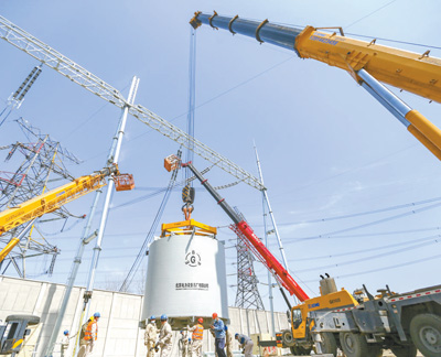 3月19日,江蘇梅里至惠泉500千伏線路加裝串聯(lián)電抗器工程施工現(xiàn)場。人民視覺