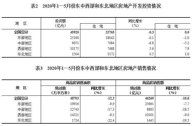 1—5月份,東部地區(qū)房地產(chǎn)開發(fā)投資25190億元,同比下降0.1%,降幅比1—4月份收窄3.0個百分點;中部地區(qū)投資9051億元,下降6.8%,降幅收窄3.8個百分點;西部地區(qū)投資10175億元,增長5.6%,增速提高1.9個百分點;東北地區(qū)投資1504億元,增長0.5%,1—4月份為下降1.6%。
