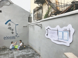 現(xiàn)在,59號(hào)院煥然一新。青磚地、灰白墻、一桌兩椅,正前方墻上寫著“左鄰右舍”,寥寥幾筆描出籬笆、房舍;右側(cè)墻一邊是不銹鋼晾衣桿、一邊是小院公約?!斑@20平方米的空地兒,可是老院子里難得的開闊地,街坊鄰里路過誰(shuí)不進(jìn)來瞧兩眼,它就是我們的‘公共會(huì)客廳’?!壁w芙榮說。