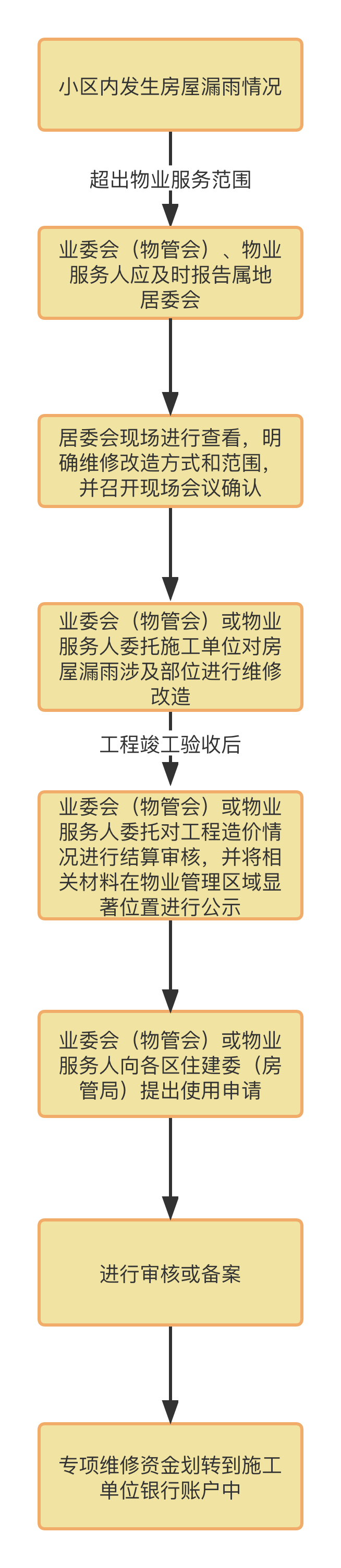 由屬地居(村)民委員會(huì)召集業(yè)委會(huì)(物管會(huì))、物業(yè)服務(wù)人及相關(guān)業(yè)主等共同到現(xiàn)場對(duì)漏雨情況進(jìn)行實(shí)地查看,明確維修改造方式和范圍,并召開現(xiàn)場會(huì)議確認(rèn)。
