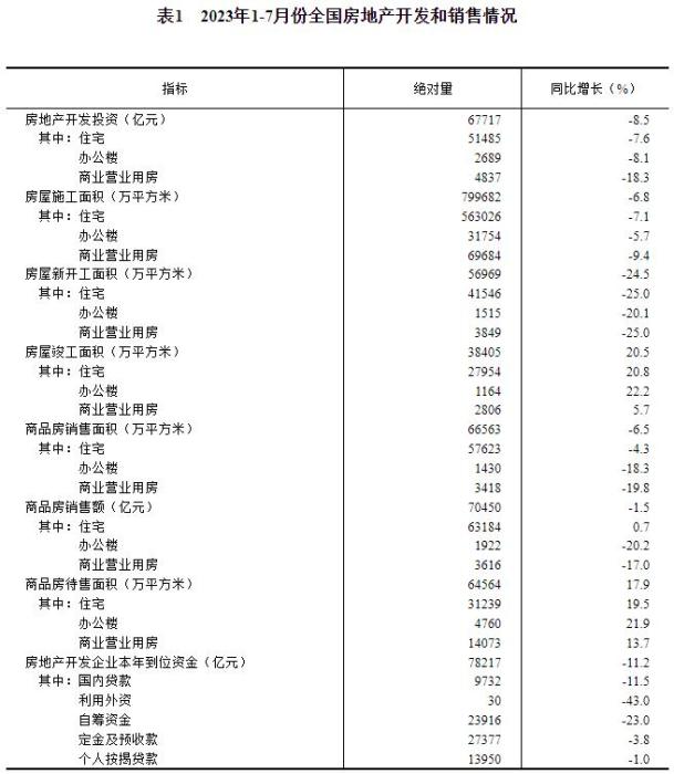 | 國(guó)家統(tǒng)計(jì)局:2023年1—7月份全國(guó)房地產(chǎn)市場(chǎng)基本情況 |