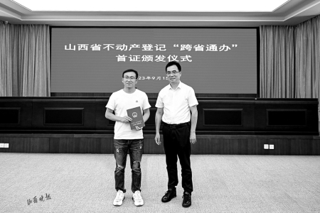 9月15日,山西省不動(dòng)產(chǎn)登記“跨省通辦”啟動(dòng)暨晉津首證頒發(fā)儀式舉行,山西省自然資源廳和天津市規(guī)劃和自然資源局簽訂《晉津不動(dòng)產(chǎn)登記“跨省通辦”合作框架協(xié)議書》,并發(fā)出首本“跨省通辦”不動(dòng)產(chǎn)權(quán)證書。此舉標(biāo)志著晉津兩地不動(dòng)產(chǎn)登記“跨省通辦”正式開啟,兩地的企業(yè)、群眾在本地即可通過“跨省通辦”窗口辦理不動(dòng)產(chǎn)登記業(yè)務(wù)。