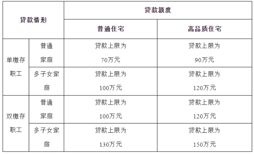 (階段性上調(diào)住房公積金貸款額度明細表)