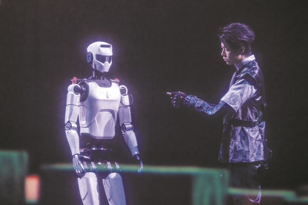 這是發(fā)生在中國大戲院長三角城市戲劇節(jié)中的最“科幻”一幕,國內(nèi)領(lǐng)先的機器人走出實驗室和展廳,以接地氣、親和的方式來到普通人身邊。面對這樣的場景,人們不再那么陌生——2025春晚上,張藝謀導(dǎo)演的《秧BOT》讓人形機器人略顯滑稽地扭起秧歌;上半年,半程馬拉松也迎來人形機器人“跌跌撞撞”的身影?!拔覀冊谔剿饕环N可能性,試著模擬發(fā)生在未來的場景?!薄毒尬镏恰匪囆g(shù)總監(jiān)、上海戲劇學(xué)院藝術(shù)科技與管理學(xué)院副院長沈倩對記者說,“無論對于機器人還是演藝產(chǎn)業(yè)來說,都具有破圈的意義。”誠然,機器人仍在亦步亦趨地努力跟上人類的節(jié)奏,但其不斷前進(jìn)的腳步已經(jīng)令人激動。面對“人機共生”的時代命題,上海邁出了全國舞臺實踐的第一步。