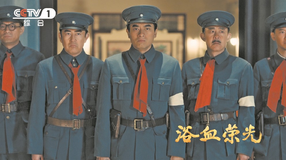 《浴血榮光》從歷史中鉤沉細(xì)節(jié),還原了中國共產(chǎn)黨人發(fā)動(dòng)南昌起義的過程?!啊由浇y(tǒng)一’的口令在片場(chǎng)很振奮人心!”那場(chǎng)戲至今在陳龍心頭翻滾。進(jìn)組前,他見過《八一南昌起義》的油畫,看過湯曉丹導(dǎo)演的上影廠經(jīng)典影片《南昌起義》,對(duì)周恩來振臂朝天連發(fā)三槍的場(chǎng)景,毫不陌生。但當(dāng)《浴血榮光》劇組正式拍攝那場(chǎng)戲,周恩來從門洞里走出,身邊將星聚首,面前、身后都堅(jiān)定地站著無數(shù)人,打響武裝反抗國民黨反動(dòng)派的第一槍,“那種無以言表的激動(dòng)、心靈的震撼,可能只有我自己能真切體會(huì)到”。