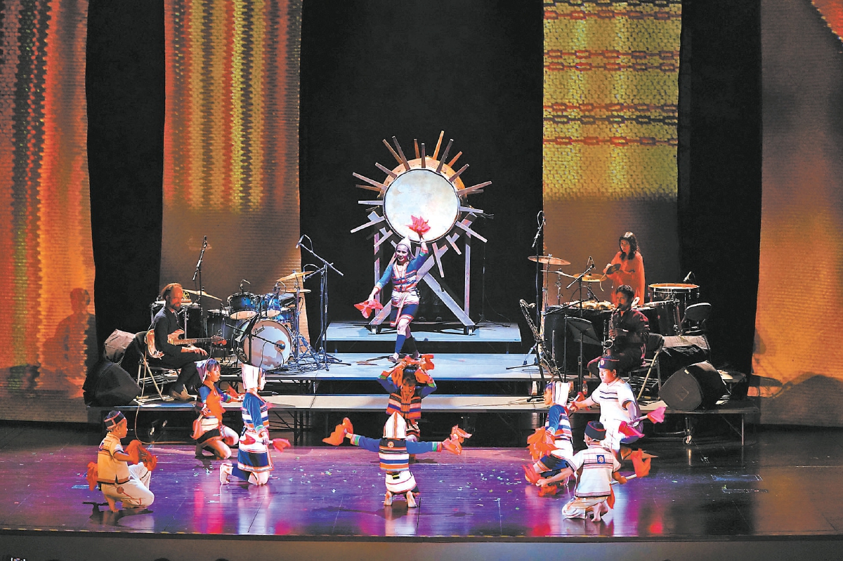10月12日晚,一場將云南深山原始生命力融合跨越時空藝術(shù)想象力的演出登上北京舞臺。作為第二十八屆北京國際音樂節(jié)的重磅演出之一,由普利策音樂獎得主、華人作曲家杜韻傾力創(chuàng)作,北京國際音樂節(jié)與美國林肯中心聯(lián)合委約的音樂劇場作品《刻在森林的?!吩诒本┫矂≡菏澜缡籽荨碜栽颇衔麟p版納的非遺項目基諾族大鼓舞傳承人何桂英,帶領(lǐng)8位基諾族少年,在舞臺上敲響大山里特有的聲音。