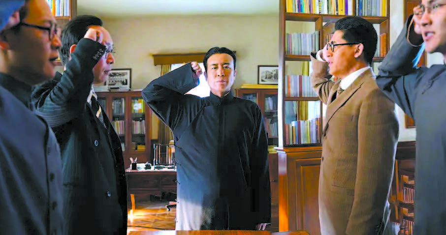 在《覺醒年代》的獄中戲里,陳獨(dú)秀聽聞學(xué)生言論后,先是做了一個看似悲痛的表情,隨即用手掩面卻發(fā)出笑聲,瞬間吸引了全體學(xué)生的注意,緊緊抓住全場的戲劇焦點(diǎn)。繼而,他雙目放光地大笑起來,雙手插兜向監(jiān)獄門口走去。動作的加入讓這層“笑”的能量再次升級。站在監(jiān)獄門口,他做了一個反常規(guī)的動作——用手來回拉拽監(jiān)獄的鐵門,身體被這個動作牽引著,發(fā)出了更為豪爽的“大笑”,與鐵門拖拽的“吱吱”聲形成獨(dú)特的交響。此時,陳先生才指著學(xué)生們說道:“你們不是一般的自大?。 鄙袂橹胁o刻板的指責(zé),而是一種混雜著嘲弄、心疼與從容的復(fù)雜意味。這種多義的面部表情處理,承載了更為豐富的“只可意會,不可言傳”的信息量。觀眾至此方悟,于和偉這一系列反常動作的設(shè)計(jì)用意,是通過陳獨(dú)秀覺得學(xué)生行為“幼稚得可笑”,來反襯他內(nèi)心的強(qiáng)大,體現(xiàn)其對革命道路艱巨性的清醒認(rèn)知。他敢于創(chuàng)造不按常理出牌的動作,最終總能將情緒準(zhǔn)確傳達(dá),以一人之能量瞬間與眾多對手“拔河”,并讓學(xué)生們心甘情愿地走出監(jiān)獄。這正是他“情理之中,意料之外”的角色自由創(chuàng)造的體現(xiàn)。