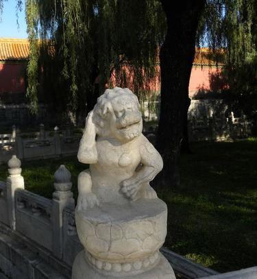 故宮有座斷虹橋,雖處在非開放區(qū),但卻因橋上萌態(tài)十足的石獅子聲名遠播。其中一只“護襠萌獅”其照片去年更為網(wǎng)友熱傳。只見它一爪摸著后腦勺,一爪護在襠部,嘴巴微張,雖然經(jīng)過日久風(fēng)吹,多少有些面目模糊,但抓耳撓腮、欲說還休的“憋屈”樣依然萌態(tài)十足。