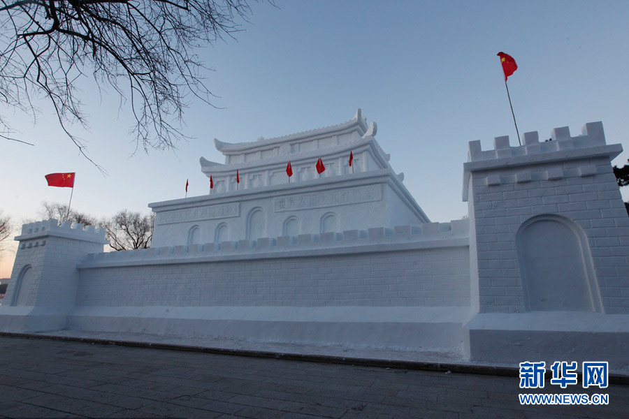 | 長春南湖公園打造雪雕版“天安門城樓” |