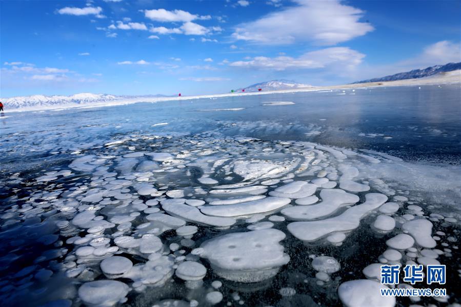 2月20日在新疆博爾塔拉蒙古自治州境內(nèi)的賽里木湖拍攝的湖面結冰后形成的冰花奇觀。進入2月份后,新疆海拔最高的湖泊賽里木湖湖面全部結冰,在湖邊的一些小泉眼處,不停泛出的氣泡在冷空氣作用下,迅速凝結,形成了如冰柱、螺旋紋等形式多樣的冰花奇觀,令人嘆為觀止。新華社發(fā)(沈志君 攝)