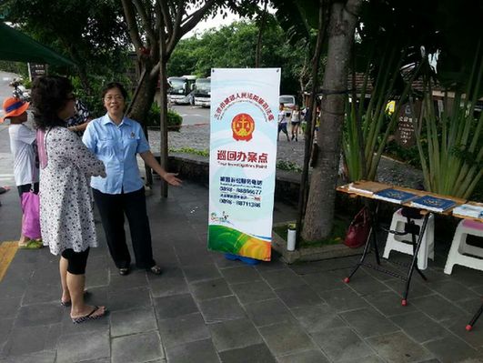 三亞旅游法庭在市民游客中心設點 三亞城郊法院旅游審判庭負責人黃春英接到投訴后,立即了解案件詳細情況,并于2月12日調解成功,酒店方同意向孫某賠償42000元,并同時免除孫某2016年2月7日至2月11日在酒店住宿時產生的住宿費用。雙方當事人對法官這一高效、快捷處理旅游糾紛的便民舉措表示感謝。 “如果走正常的司法程序,案件從起訴、傷害鑒定,再到庭審,全部流程走下來耗時至少要兩個月。”黃春英介紹說,旅游巡回法庭介入后,從接到舉報到最終達成和解僅僅用了兩天時間,游客便從酒店獲得了適度的賠償金,也無需向法院支付庭審費,更不需要費心費力地聘請律師打官司,這樣便捷的處理方式,游客當然歡迎。 據(jù)三亞市旅游質量監(jiān)督局副局長杜自傳介紹,作為旅游勝地的三亞,每年有大批游客紛至沓來,隨之而來的像住宿退房時間、旅游合同單方違約,游客與導游、景區(qū)管理者之間的糾紛不斷涌現(xiàn),而大量的投訴都是在法官的調解下化解的?!耙恍碗s、疑難糾紛往往涉及多個部門,久拖不決,沒有結果。這些糾紛的處理僅靠我們行政部門是不夠的,每每此時,旅游巡回法庭的法官總是在接到投訴后第一時間趕赴現(xiàn)場,運用扎實的專業(yè)知識、嫻熟的調解技巧,化解矛盾。旅游巡回法庭的建立起到了很重要的作用,幫了行政部門的大忙?!?/p> 多年探索 創(chuàng)建“景區(qū)移動法庭”
