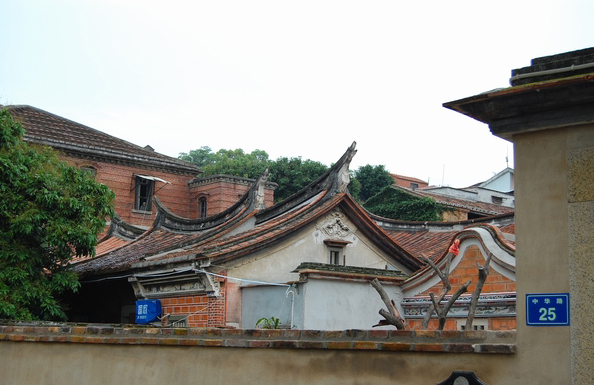 在大量的華僑洋樓建設(shè)中,體現(xiàn)出一些新風(fēng)尚:一方面,立面上采用紅磚墻與少量白色線條對(duì)比的手法蔚然成風(fēng),延續(xù)了閩南紅磚厝紅磚白石的裝飾傳統(tǒng);另一方面,以裝飾藝術(shù)風(fēng)格為代表的裝飾元素逐漸流行,并融合常見(jiàn)的傳統(tǒng)裝飾題材及西方古典裝飾元素。