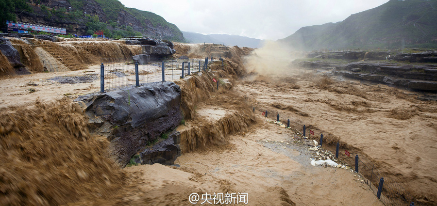 受上游強(qiáng)降雨和水庫(kù)放水影響,最近幾天,黃河壺口瀑布迎來伏汛,最大水流量達(dá)到每秒2600立方米左右,濁流滾滾奔騰而下,氣勢(shì)磅礴?。ㄑ胍曈浾呃钪?文豪)