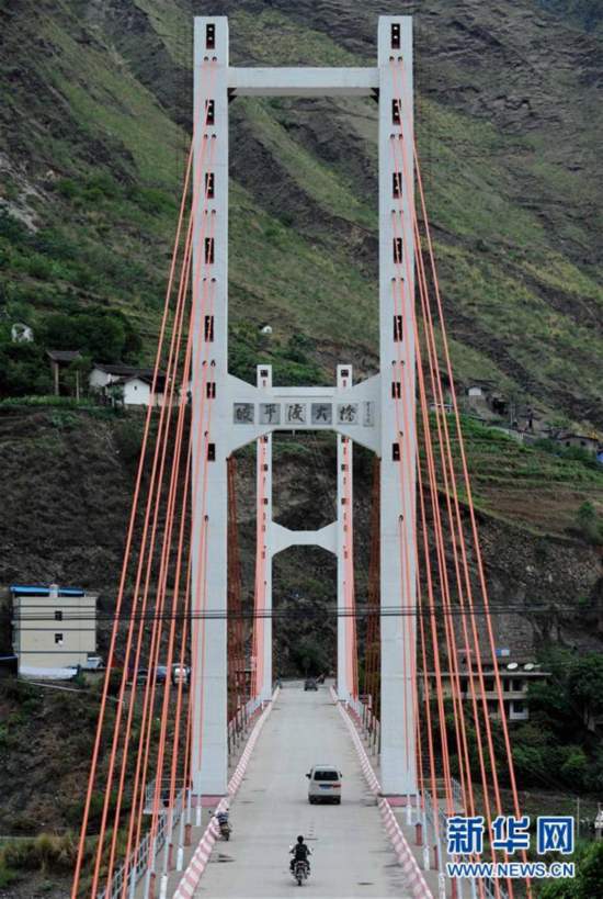 位于云南祿勸縣與四川會理縣交界處金沙江上的皎平渡大橋(2011年6月15日攝)。1935年5月,紅一方面軍在36名船工的幫助下,勝利渡過了金沙江,擺脫了國民黨軍隊(duì)的圍追堵截,取得了戰(zhàn)略轉(zhuǎn)移中具有決定意義的勝利。 “紅軍不怕遠(yuǎn)征難,萬水千山只等閑?!遍L征譜寫了一曲人類征服自然的凱歌,峽谷激流、雪山草地、物資匱乏、生命禁區(qū),這一切都不能阻擋紅軍前進(jìn)的步伐。80年過去,滄海桑田,紅軍長征走過的荒郊野嶺,如今樓宇林立,欣欣向榮;徒步翻越的大山、攻克的關(guān)隘、沼澤遍布的草地、泅渡的河流,修起了通暢快捷的公路和大橋……長征之路發(fā)生了翻天覆地的變化,昔日的艱難險(xiǎn)阻正漸漸變成康莊通途。新華社記者藺以光攝