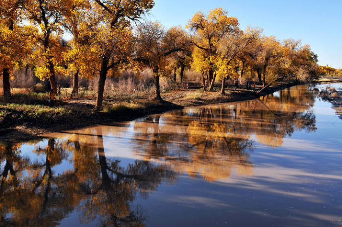 巴州旅游局局長(zhǎng)馬彥成說, 由于胡揚(yáng)具有驚人的抗干旱、御風(fēng)沙、耐鹽堿的能力,能頑強(qiáng)地生存繁衍于沙漠之中,因而也被人們贊譽(yù)為“沙漠英雄樹”。巴州輪臺(tái)縣羅布人村寨、羅布湖、及若羌縣的阿拉干沿途景色都非常迷人,希望游客到此賞游,將會(huì)領(lǐng)略到不一樣的美麗風(fēng)光。