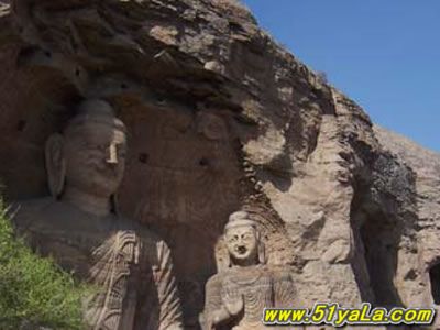 云岡石窟位于山西省大同市以西16公里處的武周山南麓。石窟始鑿于北魏興安二年(公元453年),大部分完成于北魏遷都洛陽之前(公元494年),造像工程則一直延續(xù)到正光年間(公元520~525年)。石窟依山而鑿,東西綿亙約1公里,氣勢恢弘,內(nèi)容豐富?,F(xiàn)存主要洞窟45個,大小窟龕252個,石雕造像51000余軀,最大者達17米,最小者僅幾厘米??咧衅兴_、力士、飛天形象生動活潑,塔柱上的雕刻精致細膩,上承秦漢(公元前221年~公元220年)現(xiàn)實主義藝術的精華,下開隋唐(公元581~907年)浪漫主義色彩之先河,是世界聞名的石雕藝術寶庫之一。1961年國務院公布為全國重點文物保護單位,2001年被列為世界文化遺產(chǎn)。