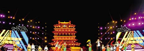 競演最后,一條巨龍騰空而起,象征著我市文化旅游產(chǎn)業(yè)像一條騰飛的巨龍,抬龍頭、挺龍胸、舞龍身、活龍水。