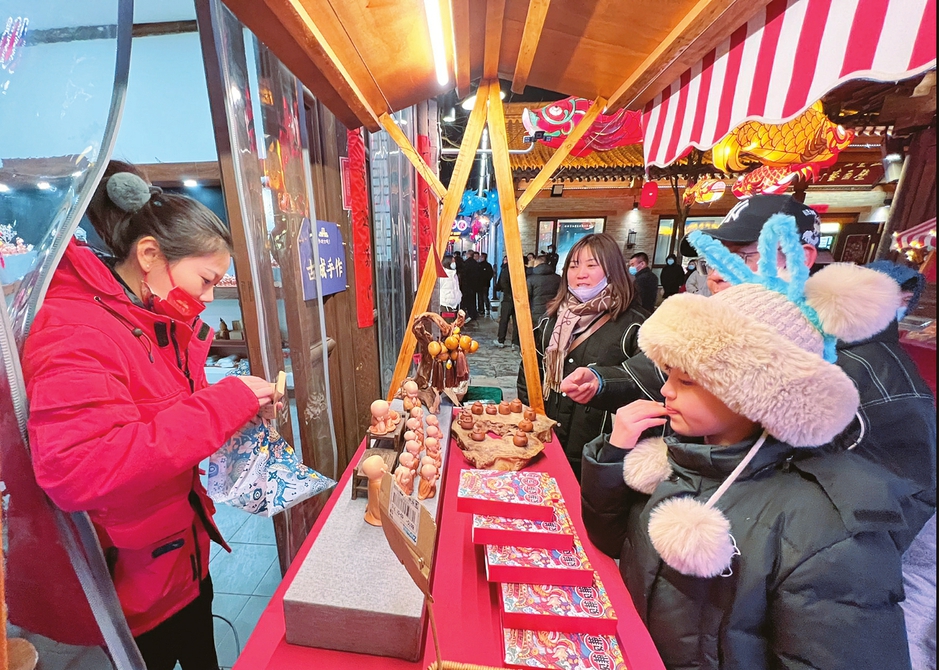 一月二十七日晚,忻州古城,游客正在選購民間手工藝品。春節(jié)期間,忻州古城推出了“中國年·在忻州”系列活動(dòng),傳統(tǒng)習(xí)俗與本地特色融合,廣大市民及游客體驗(yàn)到了別具特色的年味。本報(bào)記者李兆民攝