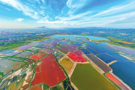 運城鹽湖色彩斑斕、美不勝收。