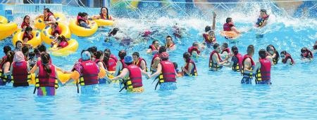 走進(jìn)精衛(wèi)水世界,陽光、椰林、沙灘,以及南方綠色植物景觀和卡通造型,讓人仿佛置身空氣清新、陽光明媚的海邊城市。這里可以體驗(yàn)以海浪海嘯為主題的探險(xiǎn),在大喇叭、彩虹滑梯、大型水寨等水上娛樂項(xiàng)目間穿梭嬉戲,感受水世界的無限清涼。在冒險(xiǎn)廣場,最刺激的和好玩的都在這里——大擺錘、魔法過山車、旋轉(zhuǎn)杯、海盜船、高空飛行、旋轉(zhuǎn)木馬、碰碰車、蹦極、火箭蹦極、尖叫、飛鷹、探空飛梭……光是聽到游客的尖叫聲,就令人興奮起來。特別是勇者無懼的蹦極,看似放棄一切的縱身一躍,竟也是將自己心靈放空所尋求的“涅槃”。