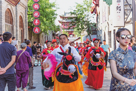 輕煮時光慢煮茶,三五好友聚一堂,在美食云集的小吃街,品一品忻州雜糧美食,擇一處院落嘗一嘗農(nóng)家樂的特色滋味。在茶樓聽?wèi)虼蚺?、談笑風(fēng)生,各路好戲連連上演,帶著邊塞風(fēng)骨,唱得淋漓盡致。著一席漢服漫步街巷,無須矯揉造作,也無須刻意擺拍,一顰一笑皆入畫,綠意的古城總有一種風(fēng)景值得駐足。剪紙、面塑、陶藝……集結(jié)忻州非遺傳承人,復(fù)蘇古城記憶,老忻州的手作與現(xiàn)代文創(chuàng)在這里交融扎根,民間藝術(shù)在這里生生不息。忻州古城的市集生活總上演著不同的精彩,新潮好玩的潮樂市集、紅火熱鬧的南門市集、充滿故事的古玩市集,在這里可以邂逅心頭好物,遇見不同的生活與態(tài)度。