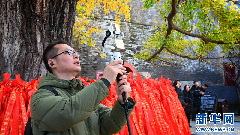近日,佇立在湖北襄陽廣德寺內(nèi)的銀杏古樹迎來最佳觀賞期,吸引了眾多游客前來拍照打卡。 楊瀟攝 新華網(wǎng)發(fā)?