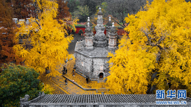廣德寺內(nèi)的銀杏樹距今已有1500多年歷史,被人們稱為“將軍樹”。如今樹葉變黃,“將軍”猶如身披“金甲”。輕風(fēng)拂過,銀杏樹葉隨風(fēng)飄落,鋪滿整個寺院,仿佛金黃的地毯,成為這個季節(jié)最美的風(fēng)景,吸引了眾多游客前來拍照打卡。(吳肖、劉夢靈)