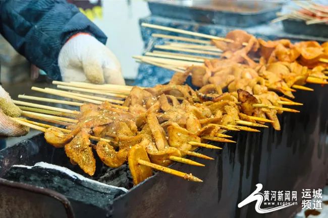 部官娃為家鄉(xiāng)“代言” 人氣旺的不僅是文化園廣場(chǎng),在文化園的小吃街,有三十多家美食攤位吸引游客前來(lái)打卡、品美食。炸油糕、烤面筋、糖葫蘆等黃河金三角特色小吃數(shù)不勝數(shù),每一個(gè)攤位前都擠滿了游客?!斑@里不僅可以品美食,還可以購(gòu)買平陸本地特產(chǎn),比在老家趕集還熱鬧?!眮?lái)自河南的張先生向記者表示。游客們穿梭在各個(gè)攤位間,挑選心儀的美食,匯聚起濃濃煙火味,滿足了群眾的“舌尖之歡”。