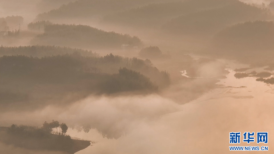 日前,安徽省郎溪縣天子湖景區(qū)出現(xiàn)云霧日出美景,一輪紅日從湖面升起,霞光將樹(shù)葉、怪石、湖水渲染……宛如一幅充滿詩(shī)意的山水畫。
