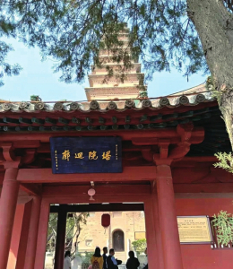 在山西永濟(jì)蒲州鎮(zhèn)西廂村峨嵋塬上的普救寺,是《西廂記》的發(fā)生地,該寺始建于唐朝武則天時(shí)期,原名西永清院,為一座佛教十方禪院。在普救寺的西軸線上,屹立著一座古樸典雅的磚塔,原名舍利塔,后因?yàn)椤段鲙洝分袕埳痛搡L鶯的浪漫愛情故事發(fā)生在塔下,故現(xiàn)在又稱“鶯鶯塔”。
