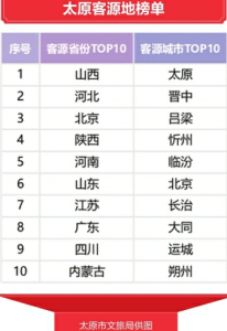 據(jù)專項(xiàng)調(diào)研,國慶假日期間,省內(nèi)游客占比64.10%,但省外游客占比35.90%,較上年同期提升6.67個(gè)百分點(diǎn)。數(shù)據(jù)顯示,周邊客源群體較為穩(wěn)定,來山西旅游的十大客源省份分別是河南、河北、北京、陜西、山東、天津、內(nèi)蒙古、江蘇、湖北和安徽,其中江蘇首次進(jìn)入假日客源TOP10之列。