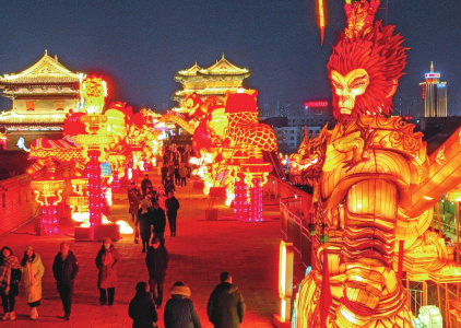 夜放花千樹,吹落星如雨,是大同現(xiàn)代夜景的詩意寫照。從2013年春節(jié)起,至今成功舉辦九屆的大同古都燈會(huì),已成為大同的傳統(tǒng)民俗活動(dòng)之一。今年的大同古都燈會(huì)從形式到內(nèi)涵都有了全面的創(chuàng)新升級(jí),在文化感、藝術(shù)性和故事性上彰顯出了新春節(jié)慶、地域民俗以及城市時(shí)尚的代表元素。燈會(huì)通過新穎的手法將“形、色、聲、光、動(dòng)”融為一體,圍繞生肖文化、祈福文化、特色非遺、傳統(tǒng)美食、大同知名文旅內(nèi)容等,設(shè)立了“古城春韻區(qū)”“悟空嘉年華”“炫彩賀春區(qū)”“魅力大同區(qū)”“年韻薈萃區(qū)”“年趣童真區(qū)”“喜慶盛世區(qū)”“王者榮耀區(qū)”“吉祥福佑區(qū)”九大主題燈區(qū),精心打造集民俗燈彩、演出、互動(dòng)、體驗(yàn)、市集為一體的新春燈會(huì),開啟了一場千年古韻與現(xiàn)代風(fēng)華的交融之旅,將“大同年·大不同”的這份喜慶歡騰、溫馨浪漫,傾情灑向流連在斑斕燈海的游人們。