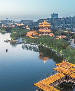 從大雁塔到大唐芙蓉園和大唐不夜城步行10分鐘—15分鐘,可以根據(jù)自己的興趣選擇。兩處都是夜游好去處,十分熱鬧。大唐芙蓉園是我國(guó)第一個(gè)全方位展示盛唐風(fēng)貌的大型皇家園林式文化主題公園,紫云樓、仕女館、杏園、芳林苑等仿古建筑,讓人感覺(jué)仿佛穿越到了唐朝,身邊穿唐裝游園的游客不少,景與人,都美得好似“世外桃源”,拍照打卡的游客,忙得不亦樂(lè)乎。如果想要體驗(yàn)更多煙火氣,那大唐不夜城的三步一景、五步一鬧無(wú)疑是最合適的選擇。每到黃昏,四面八方的人流便向大唐不夜城匯聚,大家一般乘坐地鐵而來(lái),從地鐵大雁塔站東南口出站,從北往南參觀。看完大雁塔北廣場(chǎng)的音樂(lè)噴泉表演,繼續(xù)往前800米,就是大唐不夜城步行街北入口,經(jīng)過(guò)古詩(shī)詞街時(shí),一步一詩(shī)詞,成為獨(dú)屬于長(zhǎng)安的浪漫。
