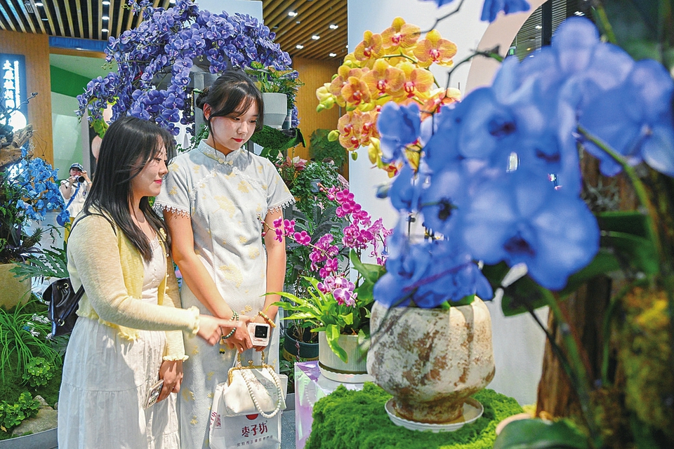 5月24日,游客在太原植物園觀賞蝴蝶蘭。為迎接端午節(jié)的到來,太原植物園舉辦“蝴蝶蘭展”,絢麗多彩的蝴蝶蘭配以中國(guó)元素的藝術(shù)化展示,讓游客在欣賞花卉獨(dú)特魅力的同時(shí),感受傳統(tǒng)文化的豐富內(nèi)涵。