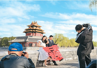 “今年訂單量明顯上升,其中不少咨詢檔期的客人是外地的?!痹诒本氖骂I(lǐng)證跟拍、婚禮紀實拍攝的獨立攝影師劉璐璐告訴記者,西城區(qū)等婚姻登記處由于毗鄰故宮、景山公園等文旅地標,相對更加“出片”,受到新人們的青睞,“有一對廣東來的情侶領(lǐng)完證后開玩笑說,他們是來北京旅游的,順便結(jié)了個婚?!眲㈣磋凑f。