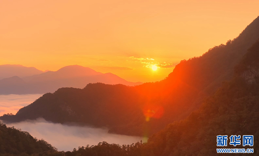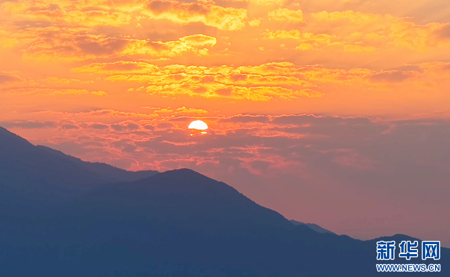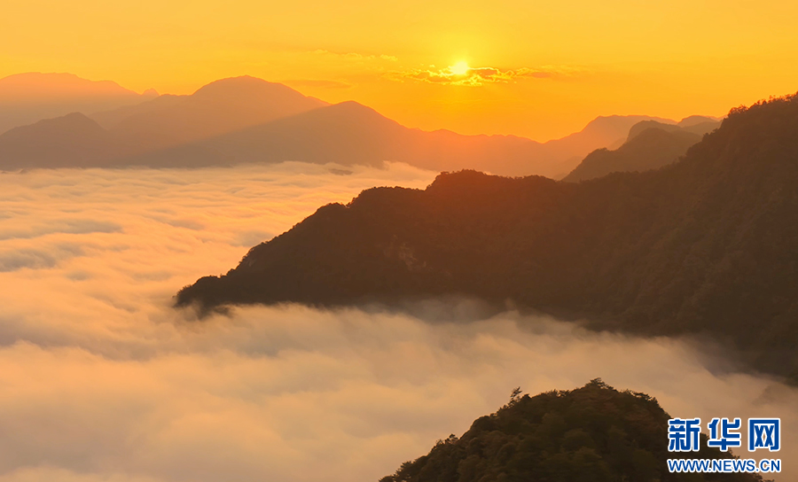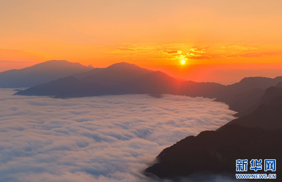 安徽仙寓山:云濤奔涌 霞光潑彩