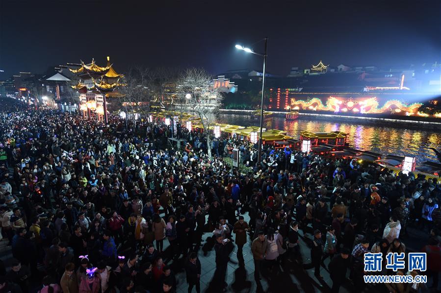 壯觀!元宵夜南京秦淮燈會游人如潮