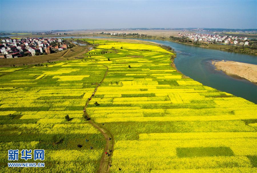 2月28日,江西省新余市新溪鄉(xiāng)龍尾洲區(qū)域油菜花競(jìng)相開放。近日,隨著氣溫的回升,江西新余龍尾洲區(qū)域油菜花開放,吸引人們踏青游玩,感受春意。 新華社發(fā)(趙春亮 攝)