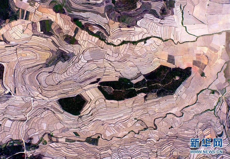 這是3月14日航拍的廣西百色市右江區(qū)永樂鎮(zhèn)西北樂村西瓜梯田景色。時下,廣西百色市右江區(qū)永樂鎮(zhèn)西北樂村進入西瓜種植護理季節(jié),地膜縱橫交錯的層層瓜田和壯族村落構(gòu)成一幅美麗的田園畫卷。百色市右江區(qū)永樂鎮(zhèn)是廣西有名的西瓜之鄉(xiāng),全鎮(zhèn)種植西瓜1.5萬畝,年產(chǎn)西瓜2.8萬噸。新華社記者 黃孝邦 攝