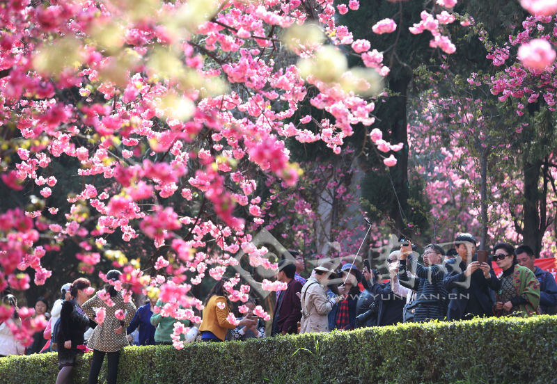 3月13日,昆明圓通動(dòng)物園人潮涌動(dòng),數(shù)千株櫻花和海棠進(jìn)入盛花期,吸引大批游客前來(lái)賞花觀景。
