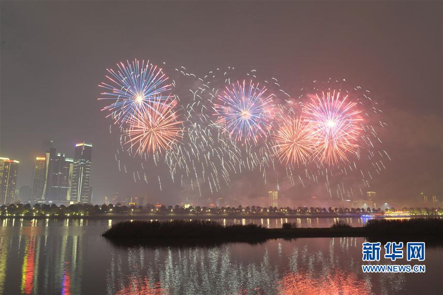 2017年1月1日夜晚,長(zhǎng)沙橘子洲附近湘江上空綻放絢麗焰火。當(dāng)晚,湖南長(zhǎng)沙橘子洲舉行焰火晚會(huì)慶祝新年到來。整場(chǎng)焰火晚會(huì)主題為“多彩星城、魅力長(zhǎng)沙”,焰火燃放時(shí)間約20分鐘。 新華社記者 龍弘濤攝