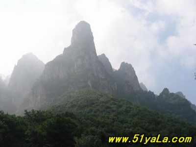 五老峰史稱東華山,歷史上為北方道教名山,海拔1809.3米,奇峰險(xiǎn)峻,需攀鏈而上,屬丹霞地貌。這里是層層峰巒,森林古木,各種生物覆蓋著整個(gè)山野。花紅草綠,山光水色,風(fēng)光旖旎非凡,故有“北有五臺(tái)觀庫(kù)存宇,南在五老看風(fēng)光”之說(shuō)。游人往縣城西南遠(yuǎn)眺,見有東錦屏峰、西錦屏峰、太乙坪峰、棋盤山峰四山峰仙態(tài)神姿,隱現(xiàn)于云煙蒼茫之中,將高1809.3米的玉柱峰環(huán)抱其中,“有偃蹇傴樓之伏”,猶如五位老人抱拳作揖迎貴賓之勢(shì),故名五老峰。