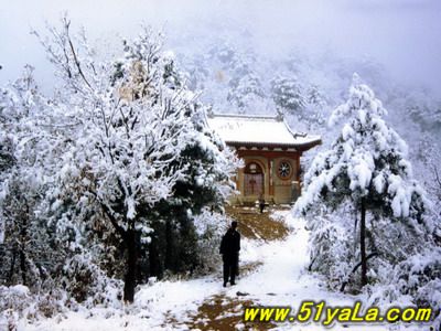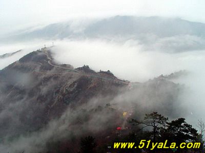 北武當(dāng)山主峰四周幾乎都是陡壁懸崖,只有一條人造“天梯”可攀。來(lái)到山腳下,過(guò)五里黃土、五里沙路,便是1400余級(jí)就山鑿筑的石階,凡險(xiǎn)峻之處,設(shè)有鐵索扶手。石階一線疊置,從下仰視,宛如“天梯”。游人攀登,每一步都可聽(tīng)到悠揚(yáng)頓挫的“石音”,形成獨(dú)特的“石樂(lè)”絕景。沿著石階,奇松異石、廟宇石刻,掩沒(méi)在蔥郁的山林植被之中,相間點(diǎn)綴,相映成趣。主要的山石景觀有:古猿望日、石豬受難、九龍出洞、石象守山、天壺傾露、石羊朝圣、石龜下蛋、石虎、石蛤蟆、龜蛇斗智等。最令人稱奇的是“龜蛇斗智”奇觀,相傳神龜和青蛇不安心修道,互相格斗,經(jīng)過(guò)七七四十九天的麈戰(zhàn),神龜節(jié)節(jié)敗退,青蛇步步緊逼。其時(shí),恰逢真武大帝返宮,見(jiàn)狀,輕輕用手指一點(diǎn),龜蛇便動(dòng)彈不得,從此永久停留在這里,成千古一絕——“蛇石”虎視眈眈,“龜石”尾臨懸崖,萬(wàn)斤重石,峭立崖畔,用力一推或經(jīng)風(fēng)一吹,便搖搖欲墜,令人心懸,所以又稱風(fēng)動(dòng)石,為我國(guó)罕見(jiàn)的景觀之一。主要的奇松景觀有:鴛鴦松、迎客松、托天松、母子松等。最使人嘆為觀止的是“擎天探海松”,其松立于石階半道,樹(shù)身技分兩杈,一直刺青天,一枝瞰群峰。近金頂?shù)悄咸扉T(mén)石階,旁邊陡崖上刻有“喬松”二字,據(jù)載為清代道光年間永寧州牧王繼賢手跡?,F(xiàn)存喬松樹(shù)樁直徑近1米,可以想見(jiàn)其昔日雄姿。主要的懸崖峭壁有:千仞壁、舍身崖、鷹嘴崖等。還有呈垂直分布的植被,其色彩和花期隨季節(jié)變化,給北武當(dāng)山披上了“春粉、夏艷、秋紅、冬白”的盛裝。登臨武當(dāng)之巔,一覽眾山,但見(jiàn)遠(yuǎn)山蒼茫,近日含黛,松風(fēng)撲面,白云飄逸;只聞松濤陣陣,山泉潺潺,鳥(niǎo)語(yǔ)唧唧,似琴弦輕撥;夏秋之季,如晴空萬(wàn)里,金頂之下,叢林景觀相間,似七彩織錦;白云遠(yuǎn)處,群山連綿,猶如萬(wàn)龍翻騰,極為壯觀。
