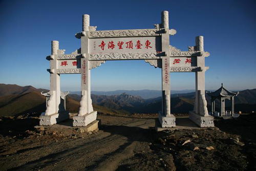望海峰的盛景在于東觀日出。由于東面再無(wú)大山阻擋,所以人的目力可東眺非常遙遠(yuǎn)的地方。峰頂曾建有望海樓,專門為觀景而建??上昃靡褮В?985年重建,為望海寺,內(nèi)供聰明文殊。有史籍記載日出之壯麗景象:“每當(dāng)蒸云寢壑之隙,爽氣澄秋之際,于日出扶桑之時(shí),可望紅日十倍于車輪,紅輪之下,隱隱水光閃爍,若波若鏡,瑰麗非凡。1977年8月,趙樸初先生登東臺(tái)觀日出后乘興填詞《五臺(tái)雜詠·調(diào)寄憶江南》,形象描繪了東臺(tái)日出之勝景: