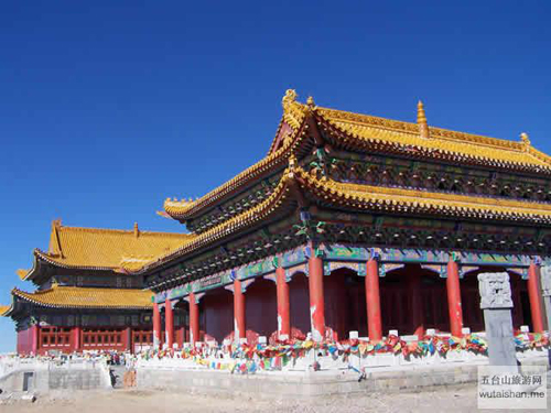 五臺山中臺翠巖峰,又名平頂山,海拔2894米,居?xùn)|、西、南、北四臺的中心,也是四臺的發(fā)脈之祖,臺頂面積也最大。《清涼山志》云:“巔巒雄曠,翠靄浮空”。其山勢酷似一頭挺立的雄獅。臺頂寺院名作演教寺,內(nèi)供孺童文殊。
