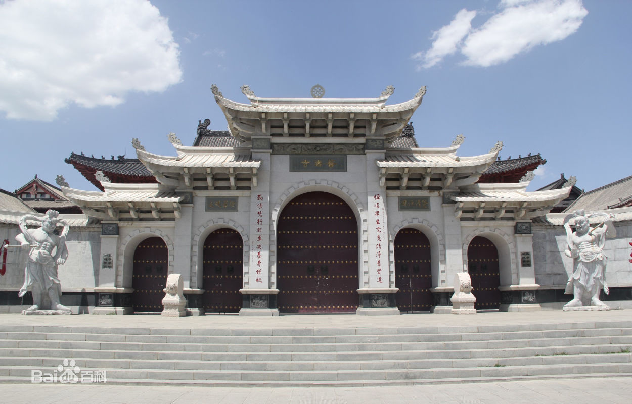 新建的普壽寺坐北面南,占地面積一萬九千九百八十八平方米。寺內分為東西兩院,東院偌大,前面為非常秀麗的漢白玉牌樓,下層為青磚砌筑,上層為木構建筑,單檐五脊頂,四出廊。山門正面額上嵌一書有「普壽寺」三字的石匾。西院一進四個小四合院,第一為天王殿院,正面為天王殿,三開間,單檐歇山頂。殿內正中置木龕,供石刻彌勒佛,背面供彩塑韋馱將軍,兩山間彩塑四大天王。天王殿兩側為鐘鼓二樓。東西樓二十四間,東配樓為客堂,墻上掛著名人字畫,其中有原中國佛教協(xié)會會長趙樸初書寫的一副對聯「恒順眾生究竟清涼普賢道,勤修梵行愿生安養(yǎng)壽僧祗」。