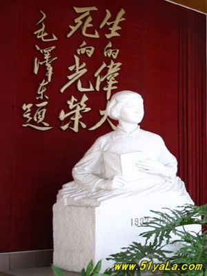 劉胡蘭(1930-1947),中國共產(chǎn)黨黨員,1946年參加革命,1947年山西軍閥閻錫山的軍隊(duì)突然襲擊時被捕,英勇不屈,在敵人鍘刀下壯烈犧牲。毛澤東曾在當(dāng)時《晉綏日報(bào)》上為之題詞:“生的偉大,死的光榮?!?/p>