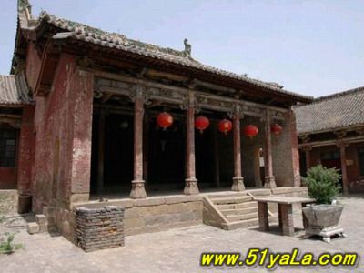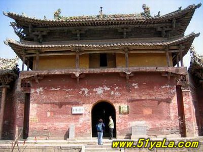 山門最古,為金時(shí)原構(gòu),五開間,兩層,下層磚砌高臺,中柱上裝青石門框及板門,門框上線刻花紋,圖案秀美。上層施平座及勾欄,粱架現(xiàn)整簡潔,結(jié)構(gòu)已具元代爬梁的雛形。屋頂琉璃為明代補(bǔ)制,鮮麗勁秀。這種高臺以上的門廡或殿宇,見宇敦煌壁畫,實(shí)物中少有。 (責(zé)任編輯:李冬梅) |