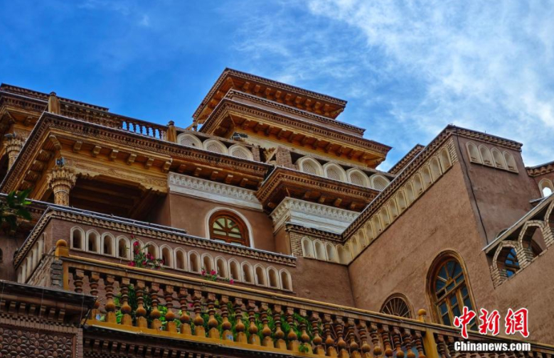 新疆國際大巴扎景區(qū),游客在地方特色建筑前參觀游覽。劉新 攝